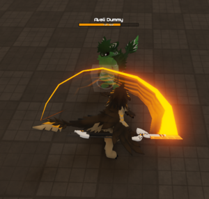 Melee combat currently only has one attack, the M1 combo where you can click (or hold click) to swing the weapon in a predertmined combo. Each swing of the combo deals differing damage, knockback, and ragdoll.